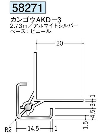 アルミ製カンゴウジョイナー(出隅) カンゴウAKD-15 アルマイトシルバー 長さ2.73m