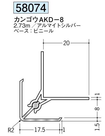 アルミ製カンゴウジョイナー(出隅) カンゴウAKD-8 アルマイトシルバー 長さ2.73m