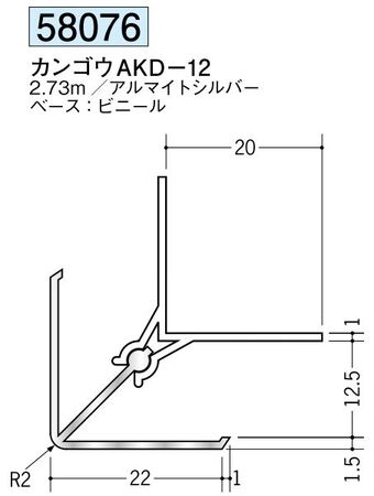 アルミ製カンゴウジョイナー(出隅) カンゴウAKD-12 アルマイトシルバー 長さ2.73m