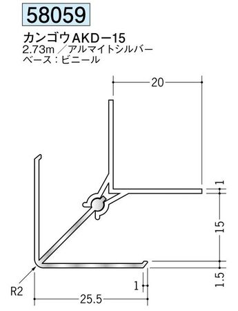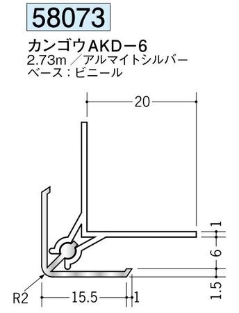 アルミ製カンゴウジョイナー(入隅) カンゴウAKI-6.5 アルマイトシルバー 長さ2.73m~価格: 3,050円 (税別) 〜