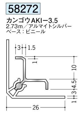 アルミ製カンゴウジョイナー(入隅) カンゴウAKI-3.5 アルマイトシルバー 長さ2.73m