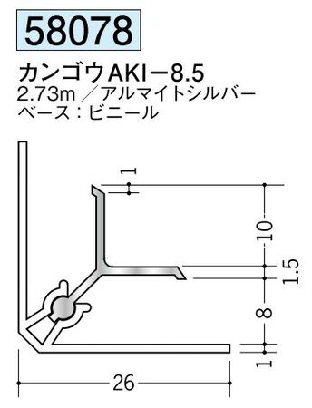 アルミ製カンゴウジョイナー(入隅) カンゴウAKI-8.5 アルマイトシルバー 長さ2.73m創建