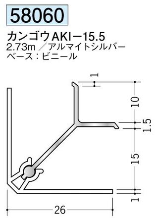 アルミ製カンゴウジョイナー(入隅) カンゴウAKI-15.5 アルマイトシルバー 長さ2.73m