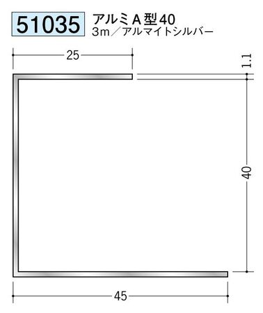 アルミ 断熱材用ジョイナーコ型 アルミA型40 アルマイトシルバー 長さ3m