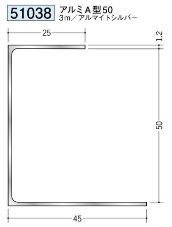 アルミ 断熱材用ジョイナーコ型 アルミA型50 アルマイトシルバー 長さ3m
