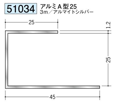 アルミ 断熱材用ジョイナーコ型 アルミA型25 アルマイトシルバー 長さ3m