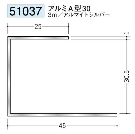 アルミ 断熱材用ジョイナーコ型 アルミA型30 アルマイトシルバー 長さ3m