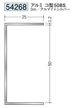 アルミ 断熱材用ジョイナーコ型 アルミコ型50BS アルマイトシルバー 長さ3m