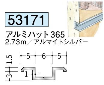 アルミ製ハット型ジョイナー アルミハット365 アルマイトシルバー 長さ2.73m創建
