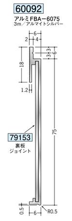 アルミ製巾木 アルミFBA-6075 アルマイトシルバー 長さ3m/裏板ジョイント・直角出隅/直角入隅