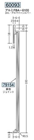 アルミ製巾木 アルミFBA-6100 アルマイトシルバー 長さ3m/裏板ジョイント・直角出隅/直角入隅価格: 180円 (税別) 〜