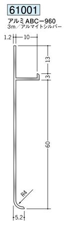 アルミ製巾木 アルミABC-960 アルマイトシルバー 長さ3m