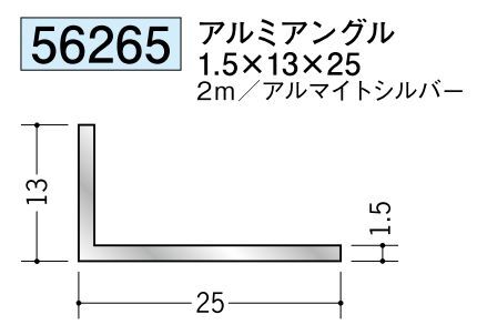 アルミ製アングル(不等辺) アルミアングル1.5×13×25 アルマイトシルバー 長さ2m