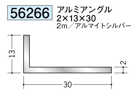 アルミ製アングル(不等辺) アルミアングル2×13×30 アルマイトシルバー 長さ2m創建