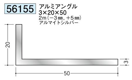 アルミ製アングル(不等辺) アルミアングル3×20×50 アルマイトシルバー 長さ2m創建