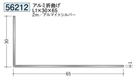 アルミ製アングル(不等辺) アルミ折曲げL1×30×65 アルマイトシルバー 長さ2m