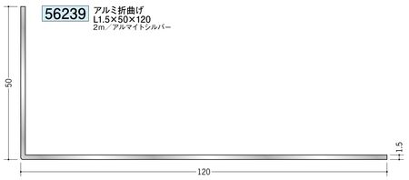 アルミ製アングル(不等辺) アルミ折曲げL1.5×50×120 アルマイトシルバー 長さ2m