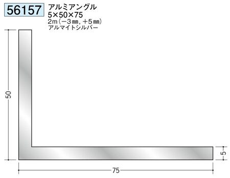 アルミ製アングル(不等辺) アルミアングル5×50×75 アルマイトシルバー 長さ2m