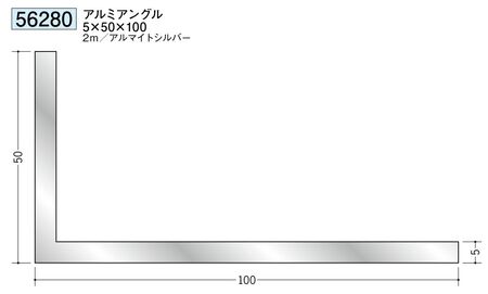 アルミ製アングル(不等辺) アルミアングル5×50×100 アルマイトシルバー 長さ2m創建