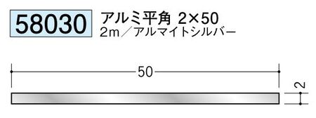 アルミ製平角(フラットバー) アルミ平角2×50 アルマイトシルバー 長さ2m