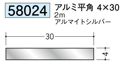 アルミ製平角(フラットバー) アルミ平角4×30 アルマイトシルバー 長さ2m