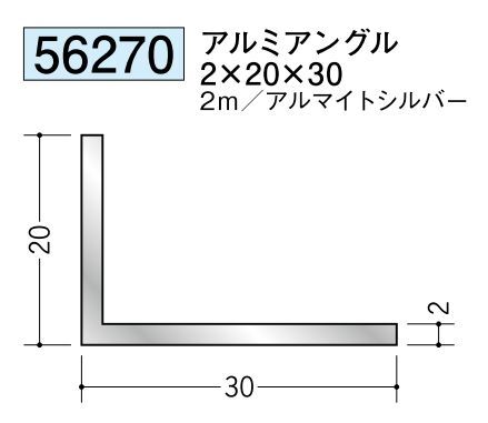 アルミ製アングル(不等辺) アルミアングル2×20×30 アルマイトシルバー 長さ2m