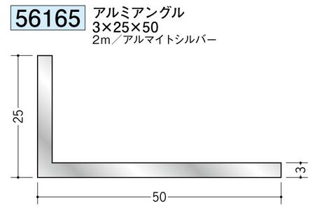 アルミ製アングル(不等辺) アルミアングル3×25×50 アルマイトシルバー 長さ2m