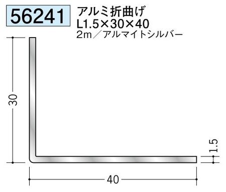アルミ製アングル(不等辺) アルミ折曲げL1.5×30×40 アルマイトシルバー 長さ2m