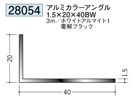 アルミ製アングル(不等辺) アルミカラーアングル1.5×20×40BW カラー:2色 長さ3m