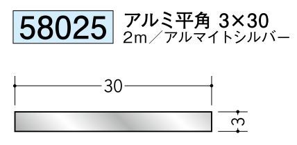 アルミ製平角(フラットバー) アルミ平角3×30 アルマイトシルバー 長さ2m