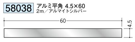 アルミ製平角(フラットバー) アルミ平角4.5×60 アルマイトシルバー 長さ2m