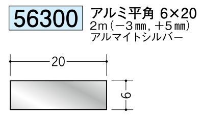 アルミ製平角(フラットバー) アルミ平角6×20 アルマイトシルバー 長さ2m