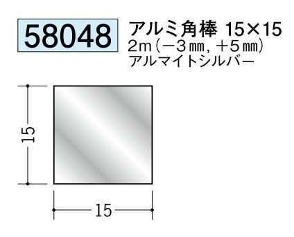 アルミ製角棒アルミ角棒15×15 アルマイトシルバー 長さ2m創建