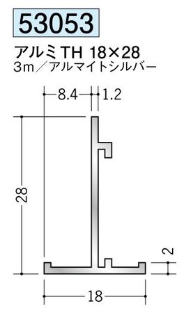アルミ製Tバー アルミTH 18×28 アルマイトシルバー 長さ3m