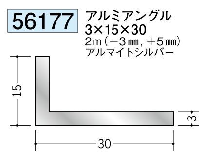 アルミ製アングル(不等辺) アルミアングル3×15×30 アルマイトシルバー 長さ2m