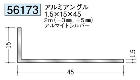 アルミ製アングル(不等辺) アルミアングル1.5×15×45 アルマイトシルバー 長さ2m