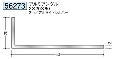 アルミ製アングル(不等辺) アルミアングル2×20×60 アルマイトシルバー 長さ2m