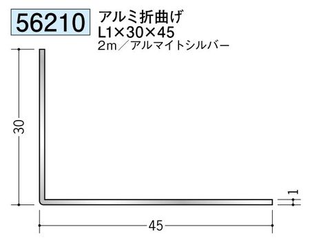 アルミ製アングル(不等辺) アルミ折曲げL1×30×45 アルマイトシルバー 長さ2m創建