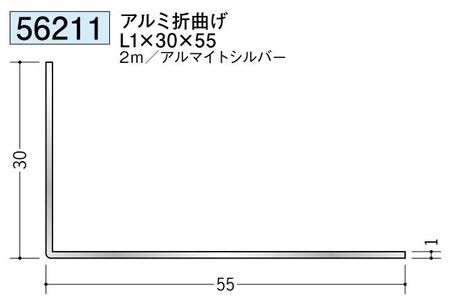 アルミ製アングル(不等辺) アルミ折曲げL1×30×55 アルマイトシルバー 長さ2m