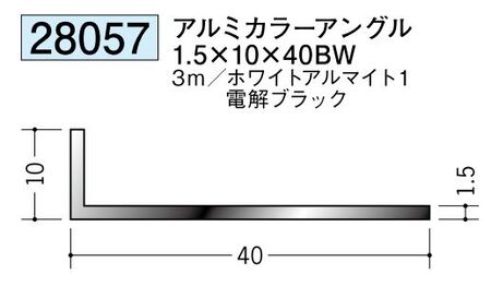 アルミ製アングル(不等辺) アルミカラーアングル1.5×10×40BW カラー:2色 長さ3m