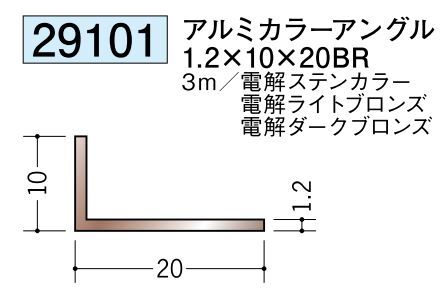 アルミ製アングル(不等辺) アルミカラーアングル1.2×10×20BR カラー:3色 長さ3m
