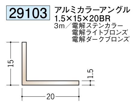 アルミ製アングル(不等辺) アルミカラーアングル1.5×15×20BR カラー:3色 長さ3m