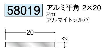 アルミ製平角(フラットバー) アルミ平角2×20 アルマイトシルバー 長さ2m創建