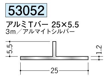 アルミ製Tバー アルミTバー 25×5.5 アルマイトシルバー 長さ3m