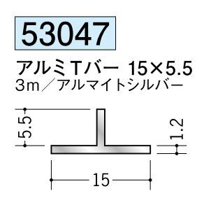 アルミ製Tバー アルミTバー 15×5.5 アルマイトシルバー 長さ3m