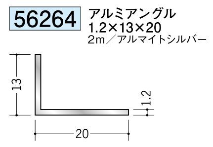 アルミ製アングル(不等辺) アルミアングル1.2×13×20 アルマイトシルバー 長さ2m
