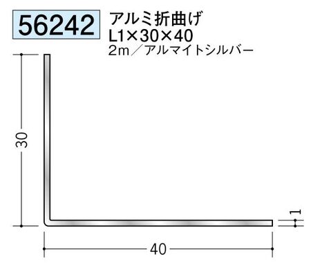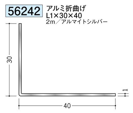 アルミ製アングル(不等辺) アルミ折曲げL1×30×40 アルマイトシルバー 長さ2m