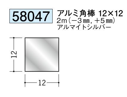 アルミ製角棒アルミ角棒12×12 アルマイトシルバー 長さ2m