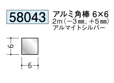 アルミ製角棒 アルミ角棒6×6 アルマイトシルバー 長さ2m