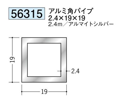 アルミ製角パイプアルミ角パイプ2.4×19×19 アルマイトシルバー 長さ2.4m創建